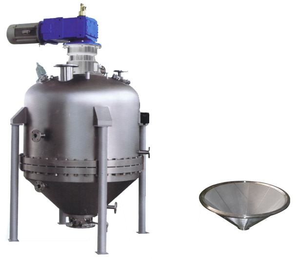 酶法(固定化酶、游离酶)制6APA、7-ACA、头孢氨苄、阿莫西林等原料药、中间体的另一种反应分离设备。锥型螺带搅拌器形成轴向循环,反应液混合均匀,剪切力小,防止固定化酶破损。锥型过滤分离元件具有十宇流过滤,酶层薄,阻力小,过滤面积大。具有流化床反冲装置。而且操作简单,过滤分离时间较短并清洗卸酶方便干净等特点,适用于高粘度物料。适用于单水相、双水相、水-有机溶液、离子液体等介质系统。也适用酶制剂工程单元设备。(发酵、提取过滤分离等工艺)